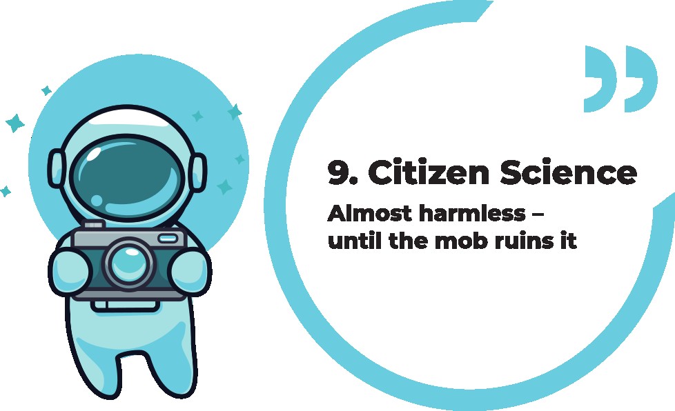 Citizen science, through volunteer engagement, expands the scope and scale of research by addressing the limitations of narrow data coverage. Collaboration at all stages of the research process helps overcome mistrust on both sides – challenging the scientists’ elitist attitudes and changing the perception of ordinary people who may feel they already “know” the answers to complex questions.